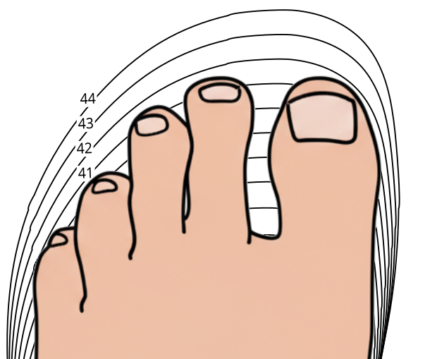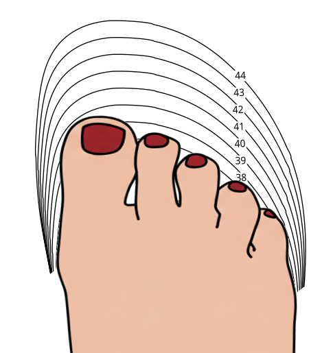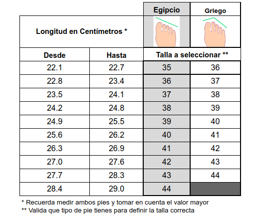 Como es común que un pie sea más largo, mide los dos y elige la talla correspondiente al pie más grande.